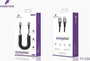 FoneTex USB C naar USB C Krulsnoer Kabel - Tot 2 Meter Uitrekbaar - Uitrekbare Oplader - Geschikt voor Samsung Carplay, Samsung - Oplaadkabel